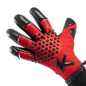 Dorso: neopreno transpirable con injertos de silicona que ayuda al armado del guante y darle más cuerpo a la zona y frecuencia para ayudar a la flexotencion de la mano. Palma látex vita grip con alto agarre y durabilidad moderada de un espesor de 3.5 mm de látex y 3.5 mm de esponja para la amortiguación de impactos del Balón. Broche: doble vuelta con plastisol para área de personalizado. Corte: Roll negativo que ayuda a tener más contacto el látex con el balón sin desproteger la palma y dedos. Dedos: puntas de látex en los dedos para darle más armado y protección a la zona de las puntas que son la parte más sensible de la mano.