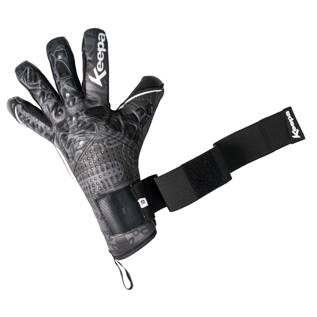 Corte: negativo híbrido con pulgar envuelto y dedo meñique envuelto para mayor contacto con el balón, con zona de transpiración entre los dedos para tener mayor ventilación.