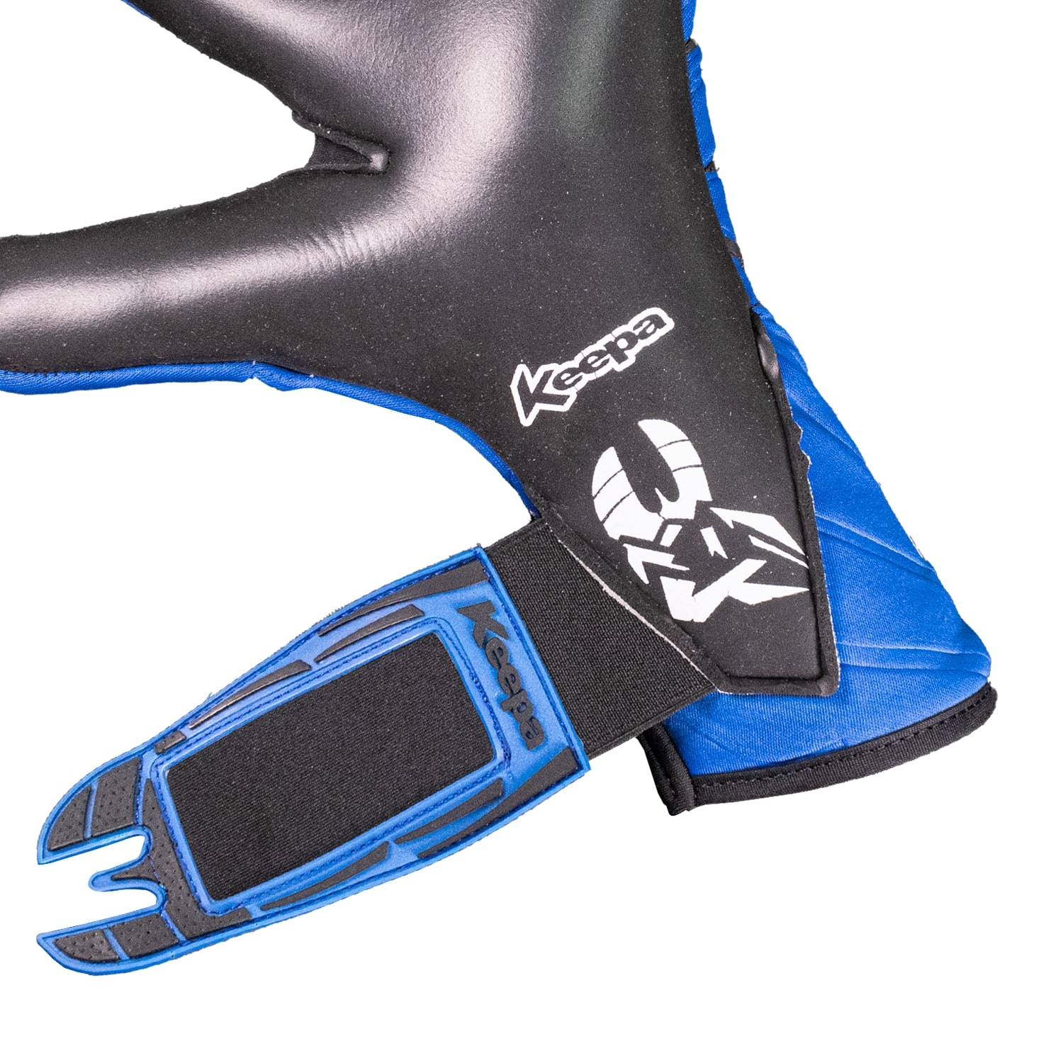 Corte: negativo híbrido con pulgar envuelto para mayor contacto con el balón, con zona de transpiración entre los dedos para tener mayor ventilación.